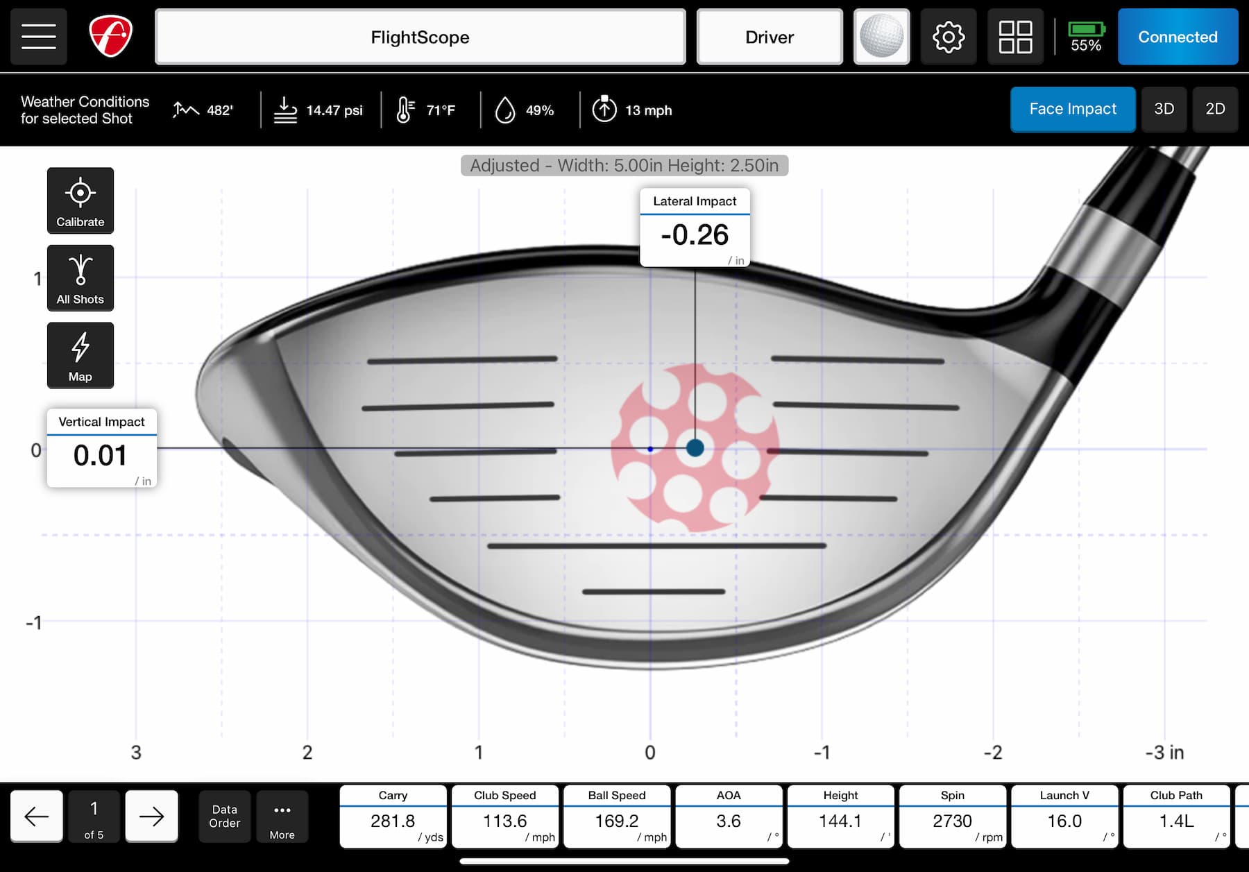 View and analyze the precise location of Face Impact to work on accuracy and consistency with wedges, irons, and woods. Compare Face Impact Location with shot data and video to improve performace.